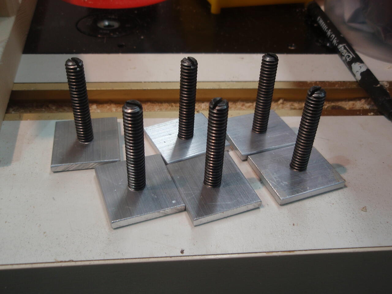 Put a 1/4-20 x 1-1/2" stud (or in my case, a 1/4-20 x 1-1/2" set screw was an easier and cheaper buy) and I have these. Thread in enough so that the screw does not protrude from the bottom but has all possible threads engaged. Used a drop of super glue although Maybe just some red or blue Loctite will work. Other threads such as 10-32 and 8-32 will work; 1/4-20 only has about 2 threads engagement in 1/8th inch but its OK and I have a lot of knobs and thumb nuts in 1/4-20. If you can't find studs the right size, You can also buy a piece of 1/4-20 all thread and cut it into 1.5" lengths and deburr them, but that is more work. Hint, if you do this thread a nut onto the all thread , cut it, then unscrew the nut to straighten out the burrs and then deburr it.