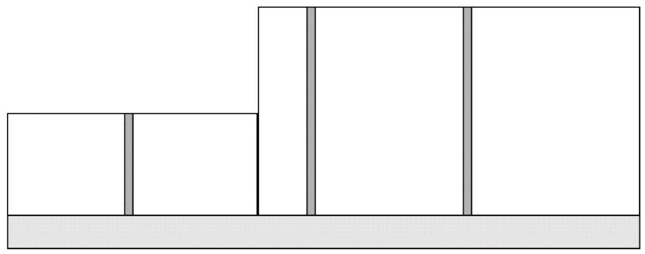 1. Two intermediate vertical panels, forming three cupboards or drawer units.