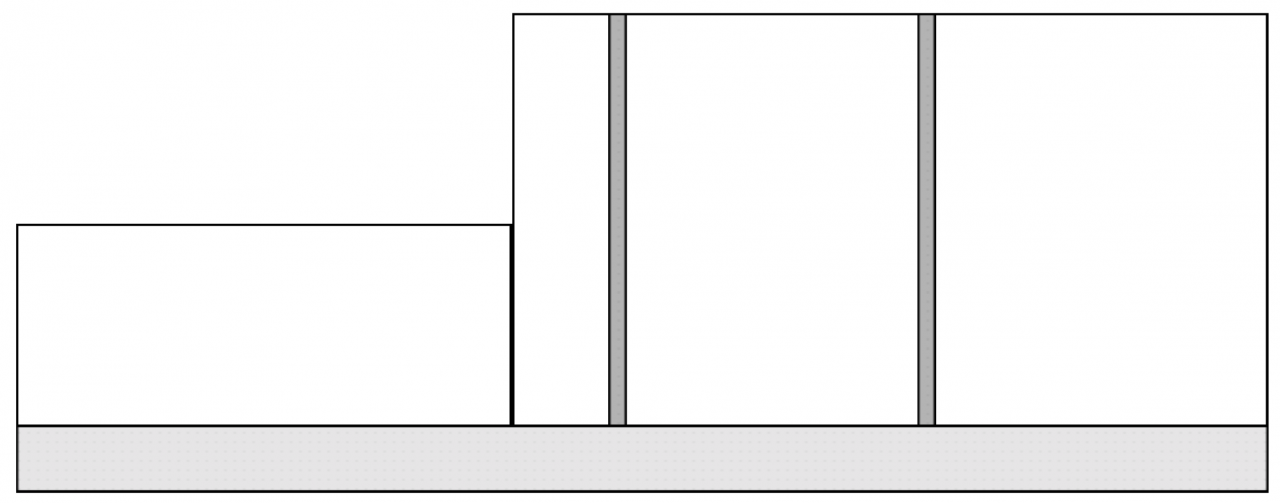 Here’s a simplified front view of one possible cabinet format. The standard rails are shown black, with the additional (full-length) rails shown gray. The major consideration here is the overall width and this is affected by other considerations, which must be made at an early stage, such as: