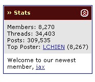 as you see, Loring has (had?) just 3 more posts to catch with the number of members, and then there'd be 1 LCHIEN post for each member!