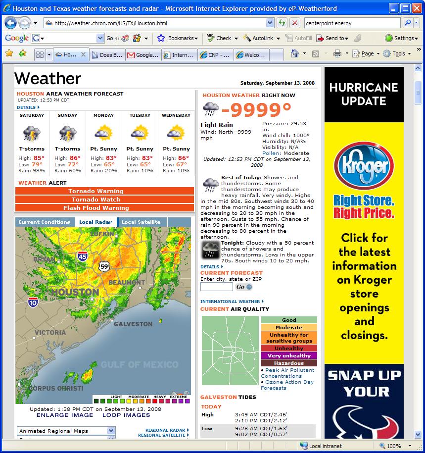 Looks like the storm took out the weather instruments at the Houston Chronicle weather station.