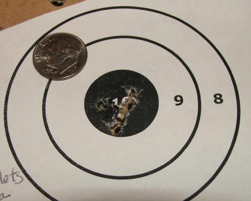 Here's a couple of targets shot at 10 meters, 5 pellets each. One of them I think 4 pellets went into the same hole.