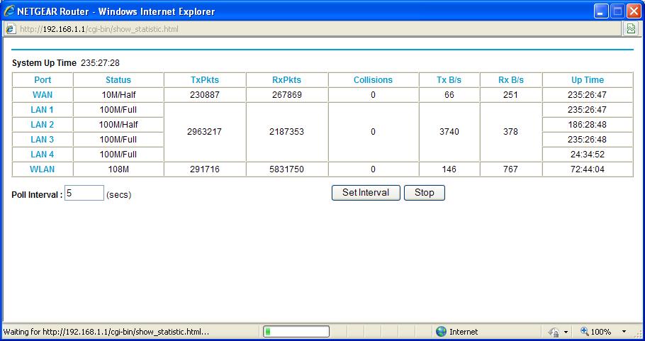 Mine shows 235 hours and 231K packets sent, 268K packets received.