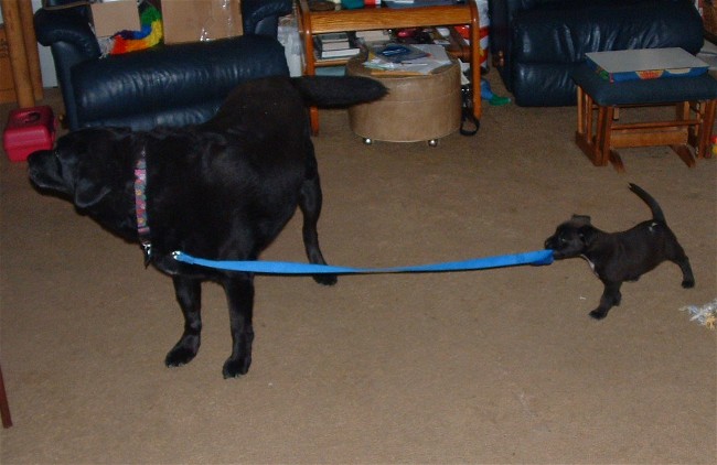 My PB is sweet and play fights with the 12 yr old Dane.