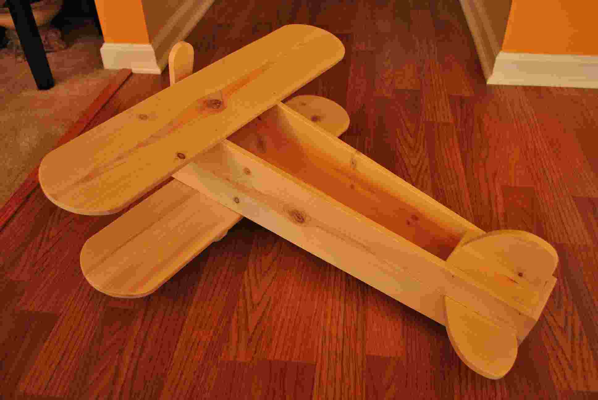 I decided to construct a toy biplane for our future twins room. I think they'll like it. The wings and the fuselage are 2 feet long. I actually had more wood left over than I thought I would. I've left it unfinished for now. The wife is not sure if she wants to paint it or put some shellac on it.