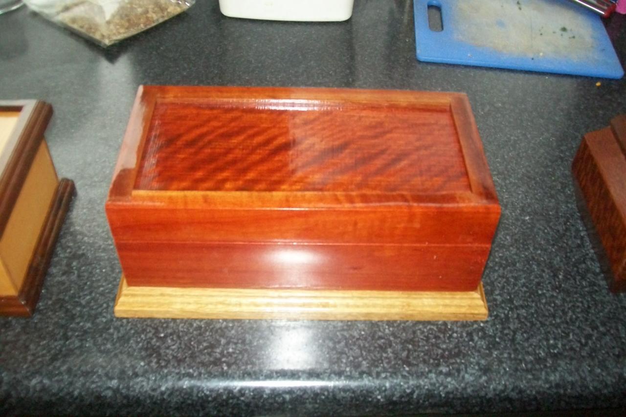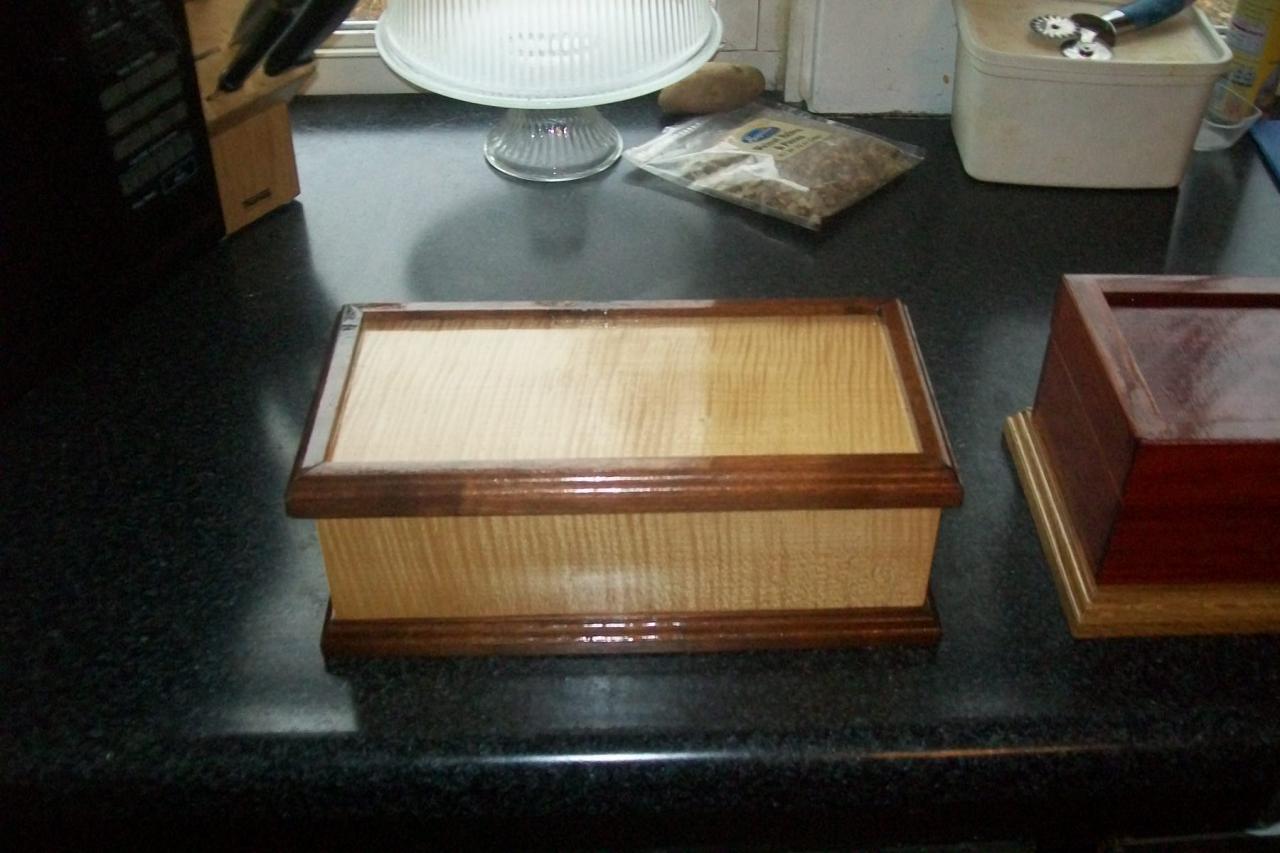 The corners being splined and pinned at an angle is more forgiving for wood movement than a miter joint might be. A good splined miter joint won't really have any issues either especially in dense hard wood like this when it is sealed really well. That is as long as it is in a humidity controlled environment like a home. Basically just a different look that won't open up on the corners.Last edited by Stytooner; 02-03-2016, 05:57 PM.LeeComment