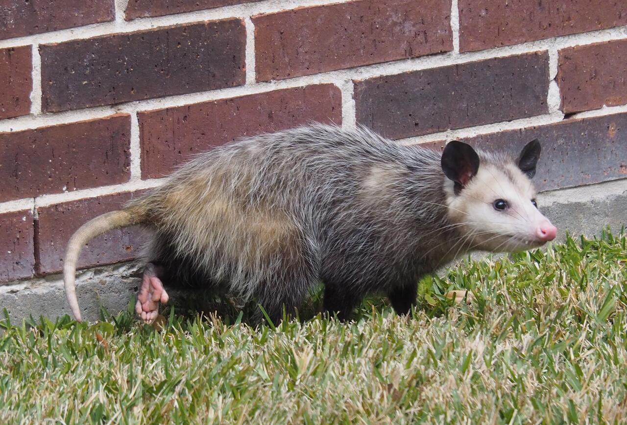 Opossum wandering through the yard