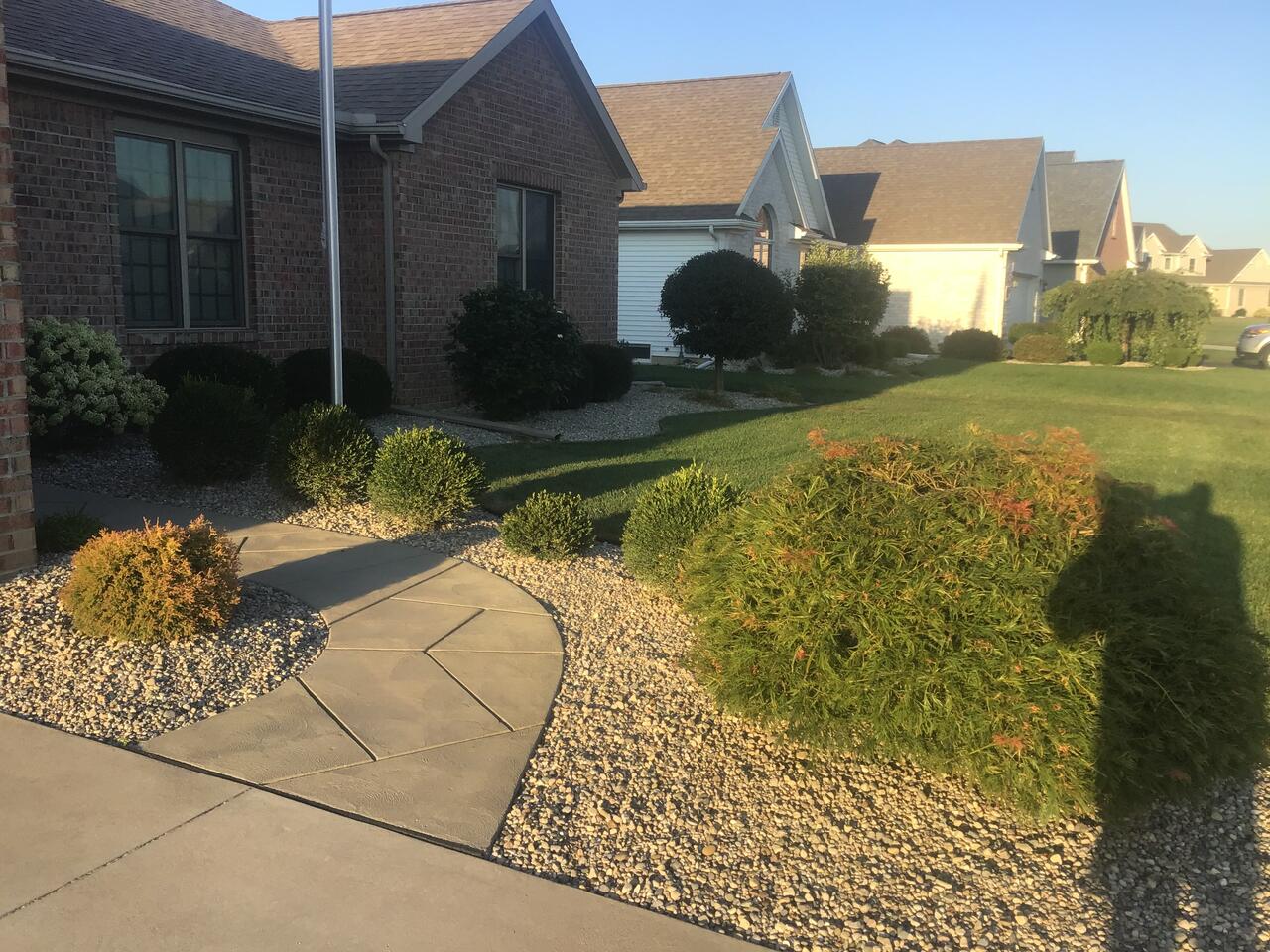 Last month, I removed 11 cu.yds. of mulch from around our home and installed some 230 ft. of plastic edging around the planting beds. Last week a landscaping company installed the weed barrier and 8.5 tons of decorative stone where the mulch used to be. No more sun bleached crap blowing all over the porch, sidewalk, and patio, along with the birds throwing it all over looking for grubs.