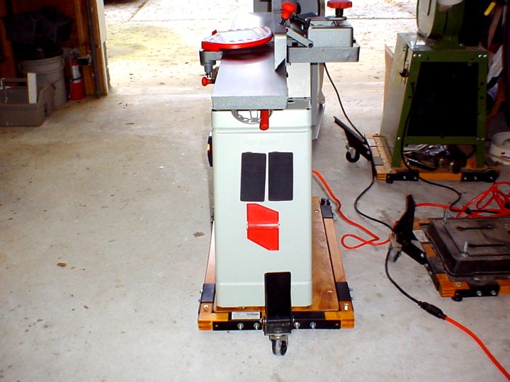 lonnie, that's a really well done base. i have the same parts from a delta mobile base ($10 on CL). is the jointer bolted to the plywood? and then the plywood is bolted to the corner webbing, right. then you built an interlocking joint frame to fit into the perimeter of the mobile base components? again, looks great.there's a solution to every problem.......you just have to be willing to find it.Comment
