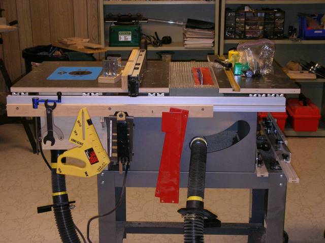 I had earlier come up w/ a solution using plywood brackets that I was and am still satisfied with. Whenever I would upload photos of my saw here, I would receive a private message or two asking how I mounted my miter/router accessory tables to the rails. It always seemed like my plywood bracket idea was too much trouble for many, though. People want fast and easy, and I don't blame them.