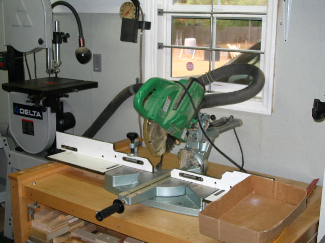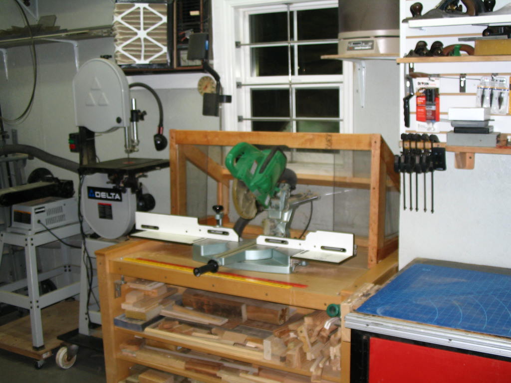 I finally got around to snapping a couple of photos of my sliding miter saw dust hood. The cart was existing, the saw is a 10" Hitachi sliding compound miter. After 3 mock ups it became a lot smaller than I expected. 1/4" Lexan was used for its skin because I wanted the light, and I had it left over from an old greenhouse project. The bottom vacuum pick up is a floor drain from HD that was intended for driveways. The hood does not limit or alter any angles or cuts so ability is lost by the saw. Access to the top of the saw if necesssary is by lifting the hood off (probably about 40 lbs) or the top is attached by screws and is removable. The sides and back lexan is captured in the wood frame like a raised panel. Did you know that you can attach Lexan in a frame with a finish nailer? I know now, it works great and makes a sturdy frame. Metal 4" clothes dryer flex duct was used until I can replace it with plastic flex duct After seeing how much dust it collects I could kick myself for not building it sooner. I think that I will build another hood simular to this that I can use on my disk/belt sanders.
