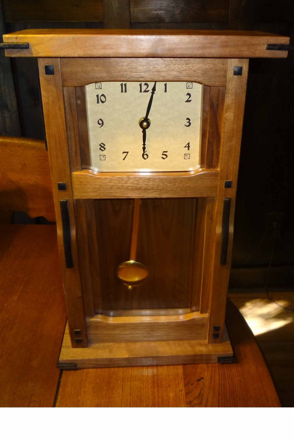 This is a clock I designed for my children. I'm making 7 of them and this is one of the finished ones. It's all walnut including the black pieces that I ebonized. They have a Seiko movement.