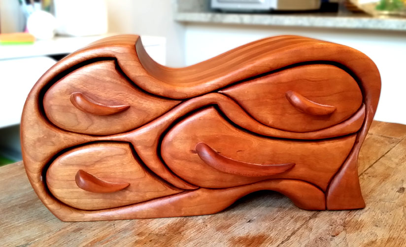 The first is a bandsaw box in cherry using the Tsunami design by Lois Ventura, I really like her designs and intend to make more along the same lines.