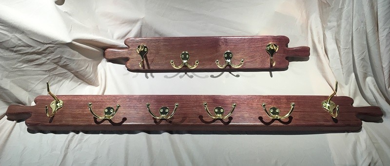 A pair of Purple Heart wall hanger racks. Evidently this particular piece had a low tannin content and the purple color just didn't come out good.