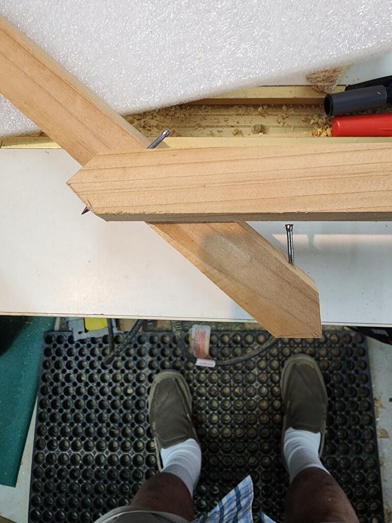 Anyway it was an interesting experience. Next time a small screw and a long driver instead of a nail might be easier to drive in the small, narrow, limited overhead space.