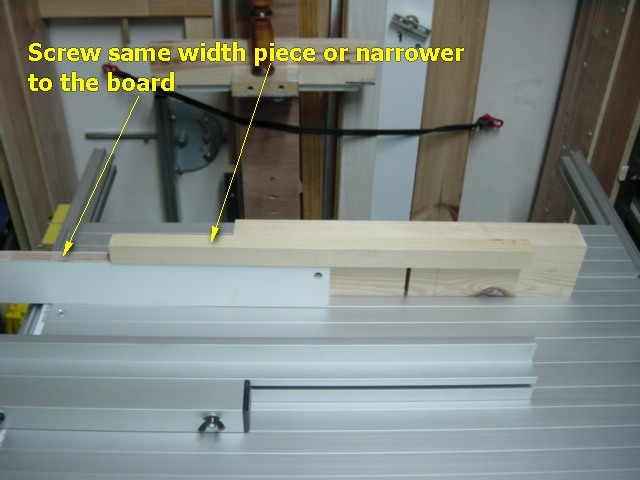 My solution was to move to the right side of the saw, with the fence between me and the blade. This would effectively function as a blade guard if something went wrong. A featherboard was used on the bottom of the board to keep it against the fence. But my concern was what might happen after the board cleared the featherboard. So I stopped the saw before clearing the featherboard, and I still had enough to cut to size. It worked, but there's gotta be a better mousetrap! Any words of wisdom? Thanks. Simply trying to learn a new technique.
