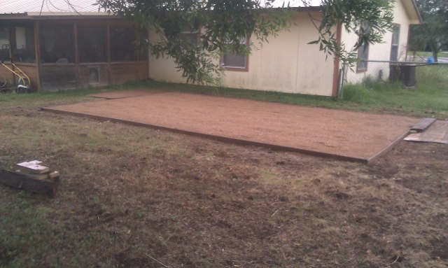 After building a border from Trex decking I scored at 1/2 price the area was back filed and leveled with dirt, soaked down and allowed to dry overnight.