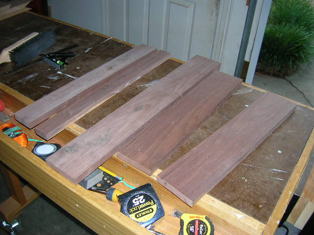 Temperature in the shop finally got below 90 yesterday so I went out to get the boards for my flag case project to the final width and length. Plan calls for 3 3/4" width so I measured twice and promptly cut the first board to 2 3/4" ARRRRRGGGGGGHHHHHH! Board on the far left is the evidence. I think brain cramps must be part of my genetic make up. So...I went back in the house and watched a movie.