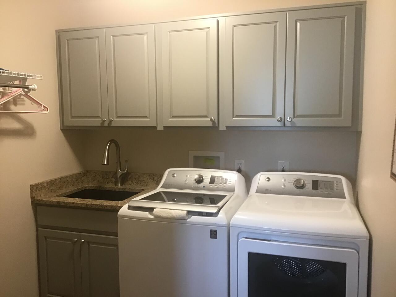 SWMBO wanted cabinets in the laundry room and the utility sink replaced with a cabinet and deep sink. I quickly figured out that hanging cabinetry 55" off the floor was way more than this 78 year old wanted to undertake alone. Luckily, she agreed to go to the cabinet shop that originally did our home when it was built. All I had to do was paint the room and remove the washer, dryer, and sink. The two guys from the cabinet shop did all of the installation today. Quite honestly, it would have taken me multiple days to do the install work. The three pictures show the laundry before, after painting, and after the installation was completed. The old utility sink goes to the local Habitat For Humanity's Restore second hand store.