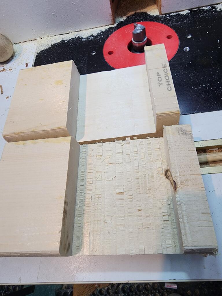 Yes, that's a safety block on the right clamped to the rip fence as a stop for length after positioning the mini-sled. It is short so that the rip fence is not tight to the workpiece to cause kickback. I have a dedicated block exactly one inch wide that uses a rockler fence clamp to mount it, I keep the front rail rip scale so that zero corresponds to the fence against the blade so it reads rip width perfectly. When using the miter fence for cross cutoffs, and the safety block, the rip fence reads the length of the cutoff + one inch. I.e. want a four inch cutoff, set the scale to 5 inches.