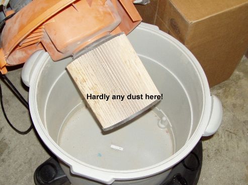 The first test I did was bandsawing some MDF - not a lot, but what you see in my picture is mostly the MDF dust from this. I was impressed. I'll want to try running this off my orbital sander ... that should be an "acid test". I'll to to get to this in the next few days and post.