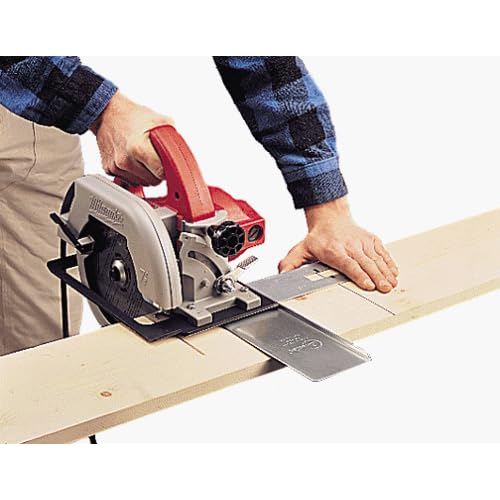 Put a piece of rectangular plywood under that jig, attached to the bottom of the arms. It should be as long as the jig and a tad wider than the fence to blade width.