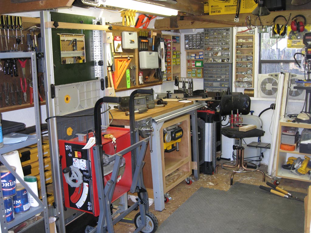 I've been working with some designs to be able to fit my flip top planer cart under the bench, as there isn't too many other places for it to fit. Right now it could go on the end wall, but a mobile bandsaw and a rolling dust collector will be going in there someday.