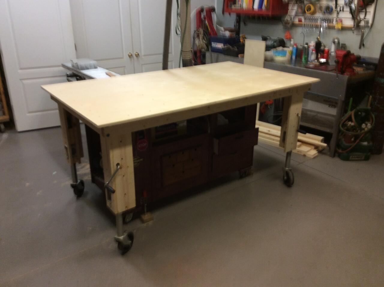 It looks like my new sawstop is getting closer, so my old customized BT setup's days are numbered. One of the challenges is the BT base I built has loads of storage which will go and my workbench acts as an outfeed and its not quite same height as SS. As I have thought this through I am wondering about possibly building a new outfeed/bench with storage. My shop is small and this bench does multiple jobs e.g. outfeed, glue ups, assembly and more. FYI it is one of the smallest sjoberg benches and is very lightweight so not the best for major hand tool work.