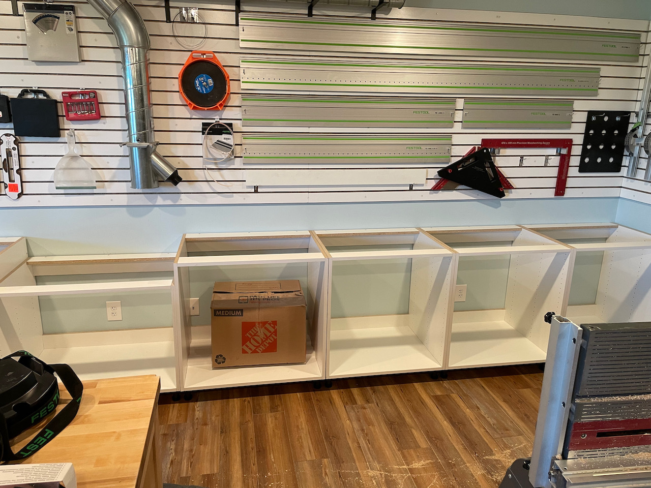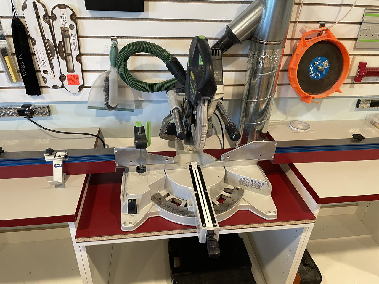 I had to go back and look at the juxtaposition, whatever that is, why in the world are you taking up so much valuable real estate on the slat wall with Festool track saw tracks?