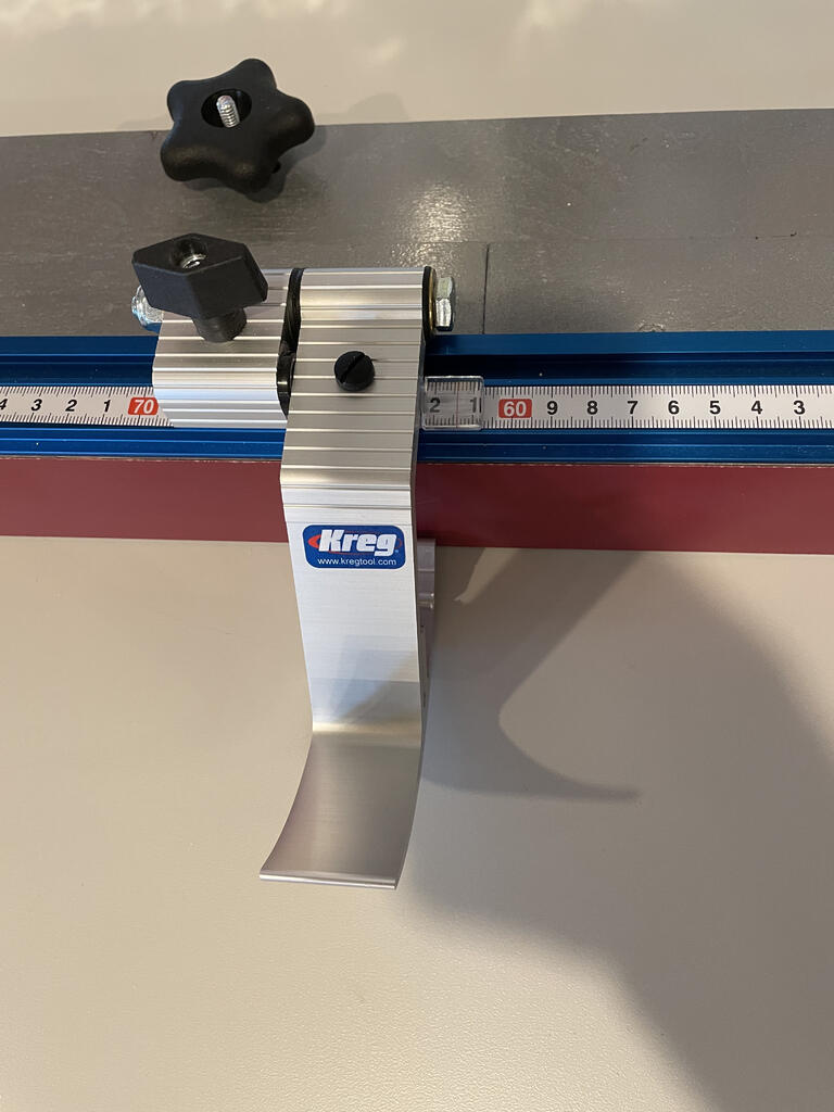 The Kapex will go in the center well and I'll be building my own fences for it. I have 24' of Kreg Top Track to use for the fences and have modified 4 Festool flip stops to work with the Kreg track because I didn't like the sloppiness of the Kreg stops.