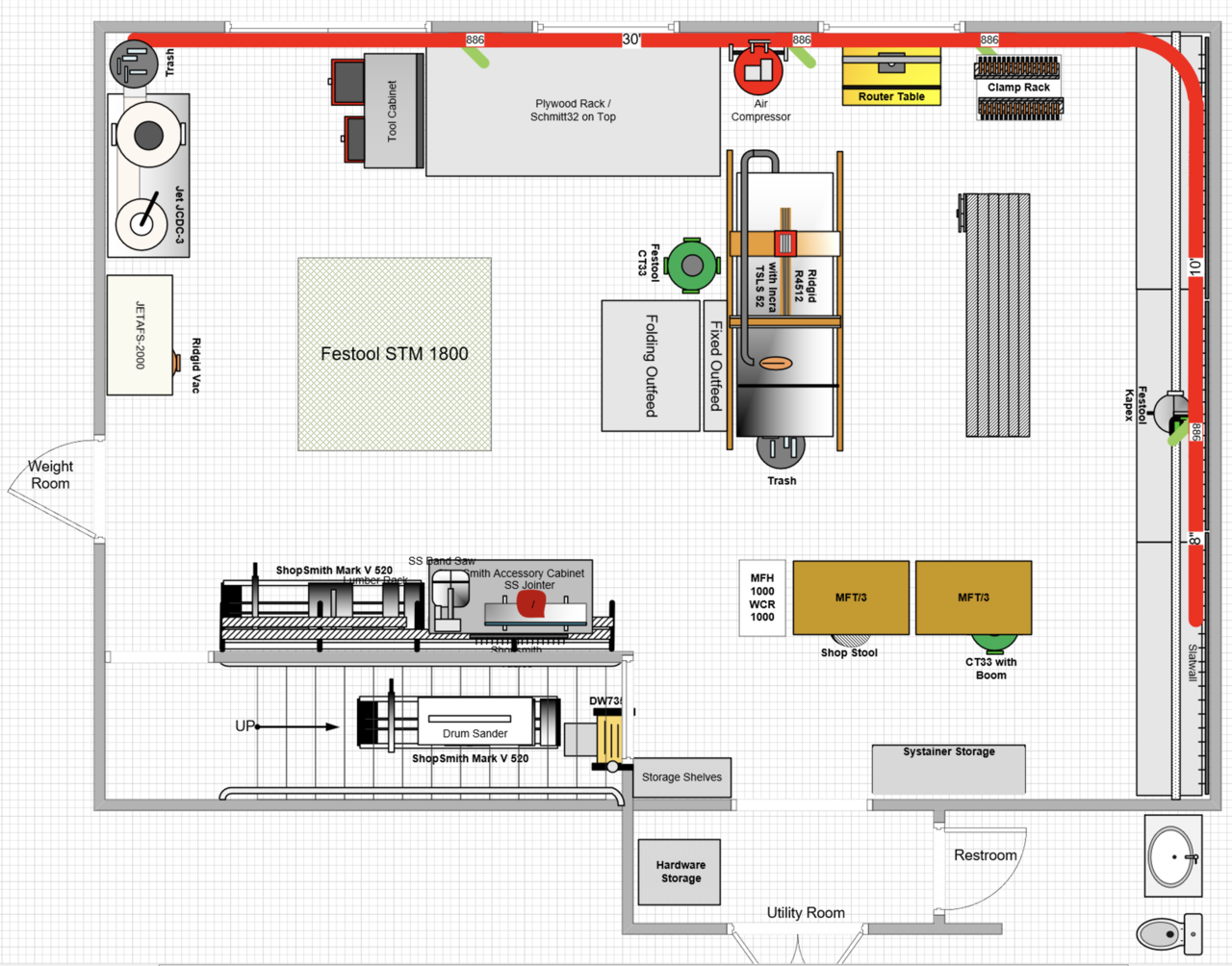 This new layout should resolve all the issues except access to the ShopSmith tables which will be less irritating, but not ideal.