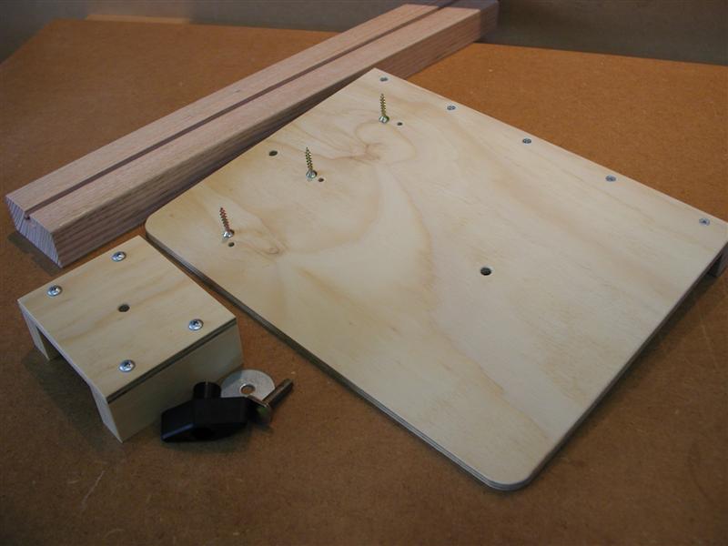 The sled is made of 1/8' plywood, the runner is a strip of "Floor panel" and the fence is some laminated plywood strip.
