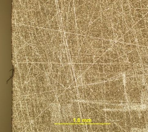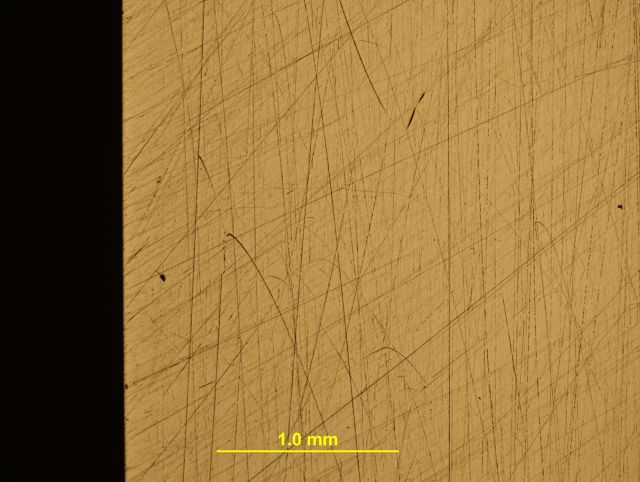Here's a couple micrographs of the 1/2" chisel backside (see scales in photos for an idea of the magnification):