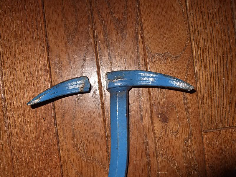A local friend came over yesterday and was helping me dismantle my front stairway, and he was using the wrecking bar with a small sledge, trying to wedge apart some pieces. Well, he made the mistake of hitting the bar on one of the nail-pullers, and it broke off.