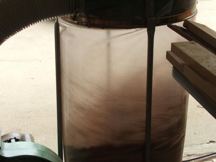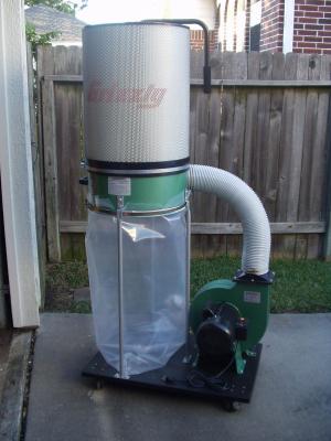HF 2HP DC with Grizzly canister mounted. Fits 20" ring perfectly. Note beater bar handle on top, helps clear fine dust from pleats.