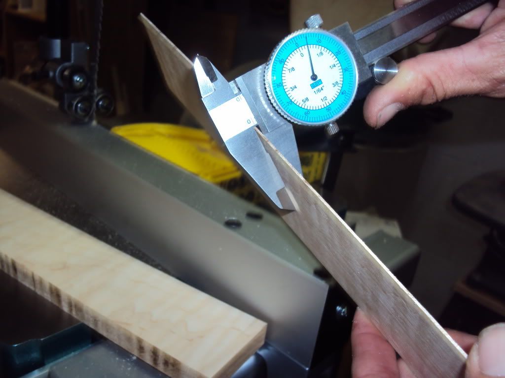 Thanks guys! It took a few days, but the saw is now set-up according to the very well written manual, including adjusting for drift. After spending a few years with my first bandsaw, a little Ryobi BS-900, it's like going from a pinto to a ferrari. One of my goals is to cut veneer. After the set-up was complete, this was my first attempt. (By the way, those are JimD's extension tables in the background, a quantum leap for that saw IMHO).