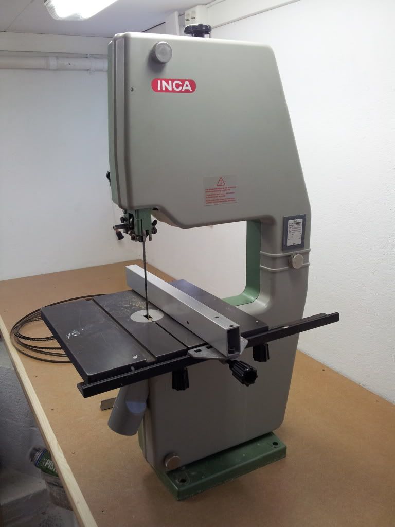A friends father was a woodworker, mainly making violins. He passed quite a few years ago and his tools have been just lying there. His wife kept them around mainly for sentimental value but over the last year or so she has been happy for some of them to come and live with me so they will continue to be used and make things for many years to come. Most of the larger items I have but I decided to make room for this little Inca bandsaw. Inca was a Swiss manufacturer long since gone out of business and believe they were an excellent tool. Never seen one before but I figured if I give this some TLC it can stay setup for the more scroll type activities leaving my large PM for the heftier resaw work and the like.