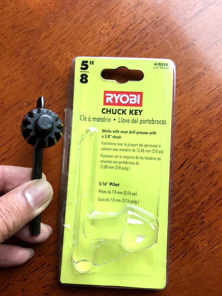 As a result of our conversation and pondering the variables in check key size I thought the Jacob's Chuck key for 1/2 to 5/8" chuck capacity would work for my chuck for $8