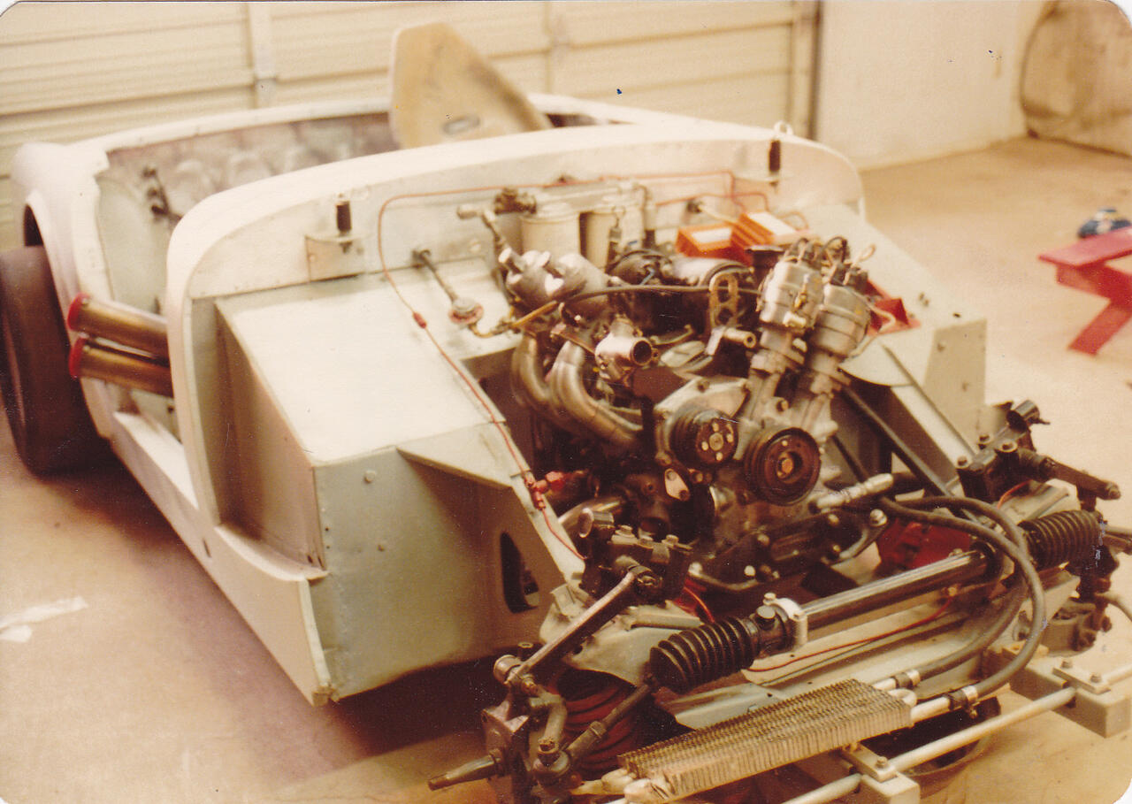 DBhost, I expected that you would have caught that I said that this was a 13B and it looks like a 12A. I don’t recall the differences but the early 12s had 2 distributors while the 13s had only 1 distributor. I didn’t know you couldn’t swap front ends of the rotary motors and I liked the ability to control 4 spark plugs with 2 distributors rather than fight with the restriction that 1 distributor created, so I installed it on my rotor motors. I don’t know how many tech inspectors that questioned the engine and measured it and said I couldn’t do it, and all of the rotor know it all shook their heads until they heard it run! Note the intake manifolds, I hand built them out of stainless steel, fully polished insides and running a pair of SU carbs I scrounged off some old Jaguar. The exhaust manifold was also hand built stainless and popped out of the passenger’s door. It’s scream was deafening, even with the silencers inserted. Then there was the rotary dragon fire belch! Oh it was wonderful! It burp fire 3 feet out of each pipe every time I let up on the gas. It definitely kept the course workers back a safe distance. Oh for the good old days!