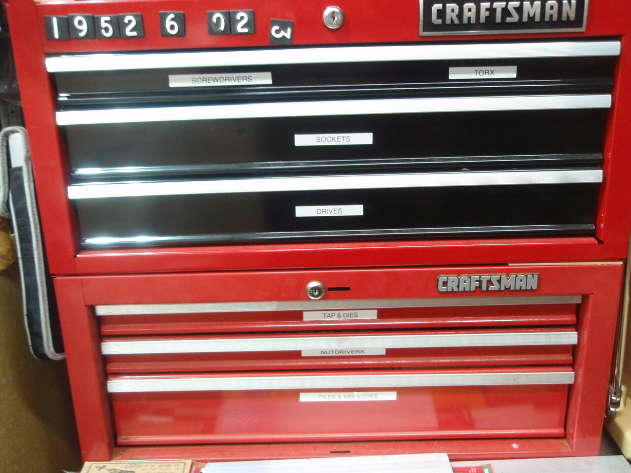 After a recent happenstance of things basically leaping out at me every time I would open a toolbox drawer in either my old 90s vintage Craftsman 9 drawer 27" tool cabinet or similar vintage Stanley Proto 27" 6 drawer tool chest, I upgraded to a Craftsman 52" 10 drawer cabinet and 8 drawer chest.