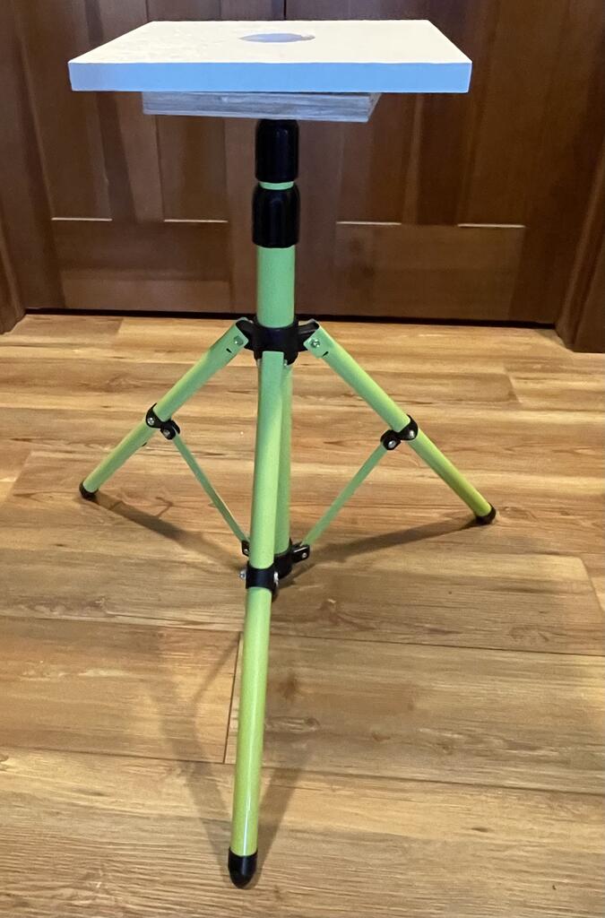 Fast forward to last week and I'm looking at $200+ finishing turntables on Amazon. Instead, I bought a $7 lazy susan on and mounted it to the stand with a 1/4 20 post knob and some scrap plywood and PVC trim I had laying around the shop.