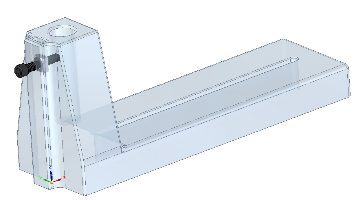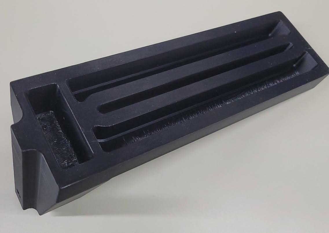 My latest turning project of the bowl exposed a bit of a design error on my part. Back in 2000, when I designed the lathe, I had no cheap access to metal machining, so most everything was constructed from wood. Well, I AM a woodworker. I constructed the banjos from plywood, glue, screws, and a lead shot/epoxy matrix. They have held up well until the stress loads of bowl turning combined with the 12" tool rest, and my learning curve catches, overcame the design. The threaded insert used to lock the tool post in place pulled out under the load from the clamping bolt and split the plywood. I glued the plywood back together, but the threaded insert remains displaced. While I was showing the lathe to my Son, he offered up a replacement for my wooden banjo. He does CMM (Coordinate Measuring Machine, CMM is a device that measures the physical geometry of objects with high accuracy and precision), 3D CAD, and 3D printing in metal and plastic at his employer. He also has outside 3D printer suppliers to work with. He took my damaged banjo, scanned it with the CMM to produce a 3D model, and rendered it into a 3D drawing with some revisions. The part was solid printed in a high strength ABS plastic with cavities to allow for the lead shot/epoxy infill. The cavities lowered the printing cost due to using less material, and allowed for a heavier part to absorb vibration. This combination resulted in a vastly improved lathe part.