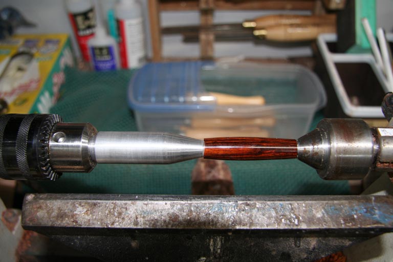 I decided to give it a try. It requires a "dead drive on the head stock end. I do not have one but I had an aluminum rod 20mm in diameter and about 10 CM (4 inches) long, so I made a "dead center drive for pen finishing. I don't use it for getting the blank into the general shape but for finishing. I have done 4 pens with ebony wood and no problems so far.