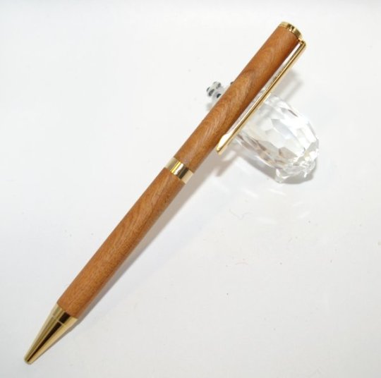 So, here it is, my first pen. I knew it would be a learning experience, but man did I learn a lot. I won't say how much time went into the pen. It is cherry from a scarp board that I had been holding onto for a while. A lot of the board is waiting for another project to determine what to do with it, but I have around 10 more blanks from what I cut from it.