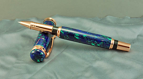 First is a Sterling Silver Sedona done in Larimar Tru-Stone the second is a Copper Jr Retro done in Azurite/Malachite Tru-Stone. The Tru-Stone sure is easier to turn now that I have a Hunter carbide tool.