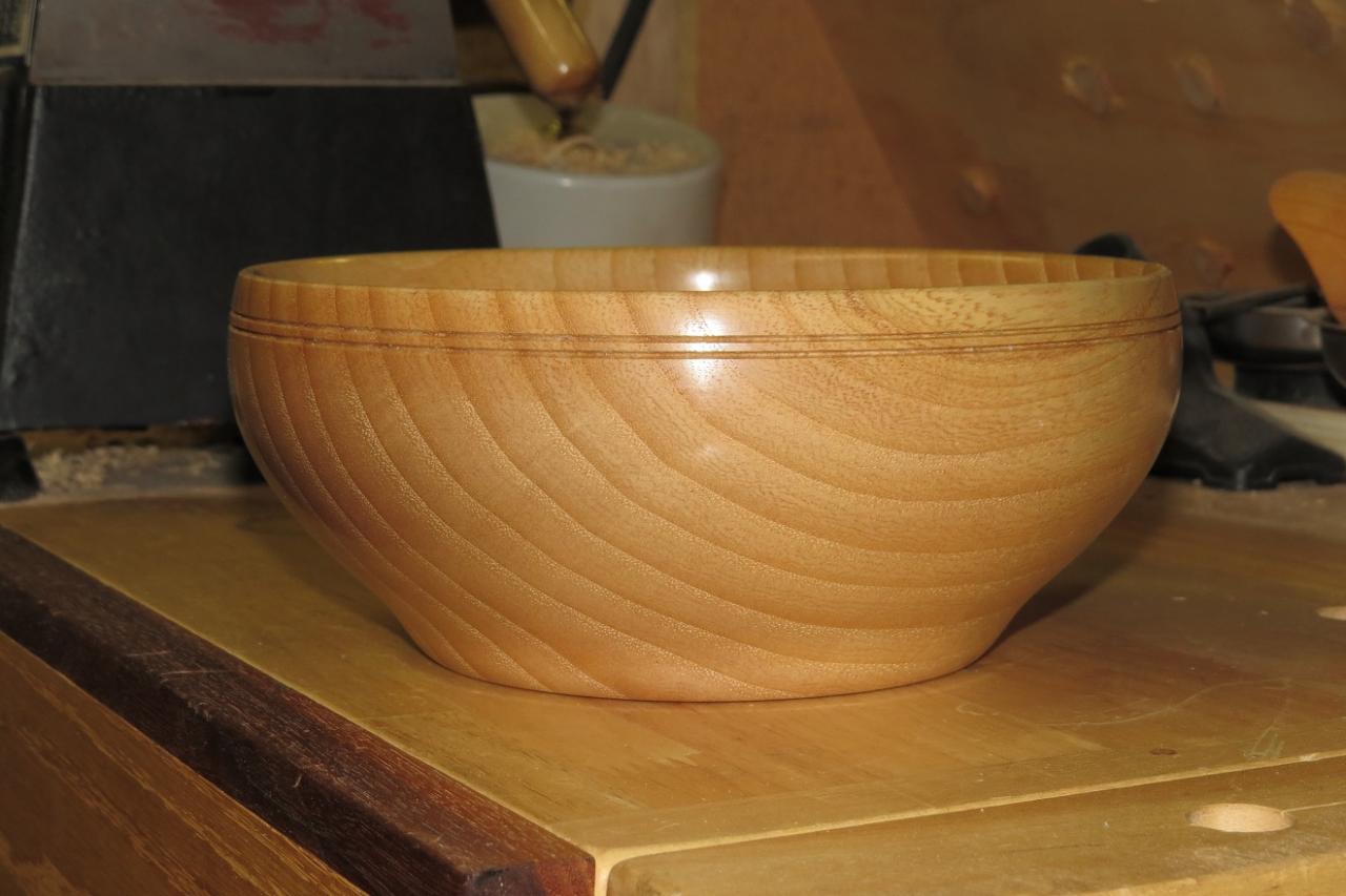 Turned this one today from the stash of ash I cut up into blanks about 8 or 9 months ago. This is the first bowl I've turned from this ash, I'm still playing with shapes; the rest has been handles, and those pestles I made for the sieve colander. Very dry, very hard, had to resharpen the bowl gouges a few times. Also used my round carbide for hogging out the inside. The aroma of this wood while working reminded me of pumpkin.