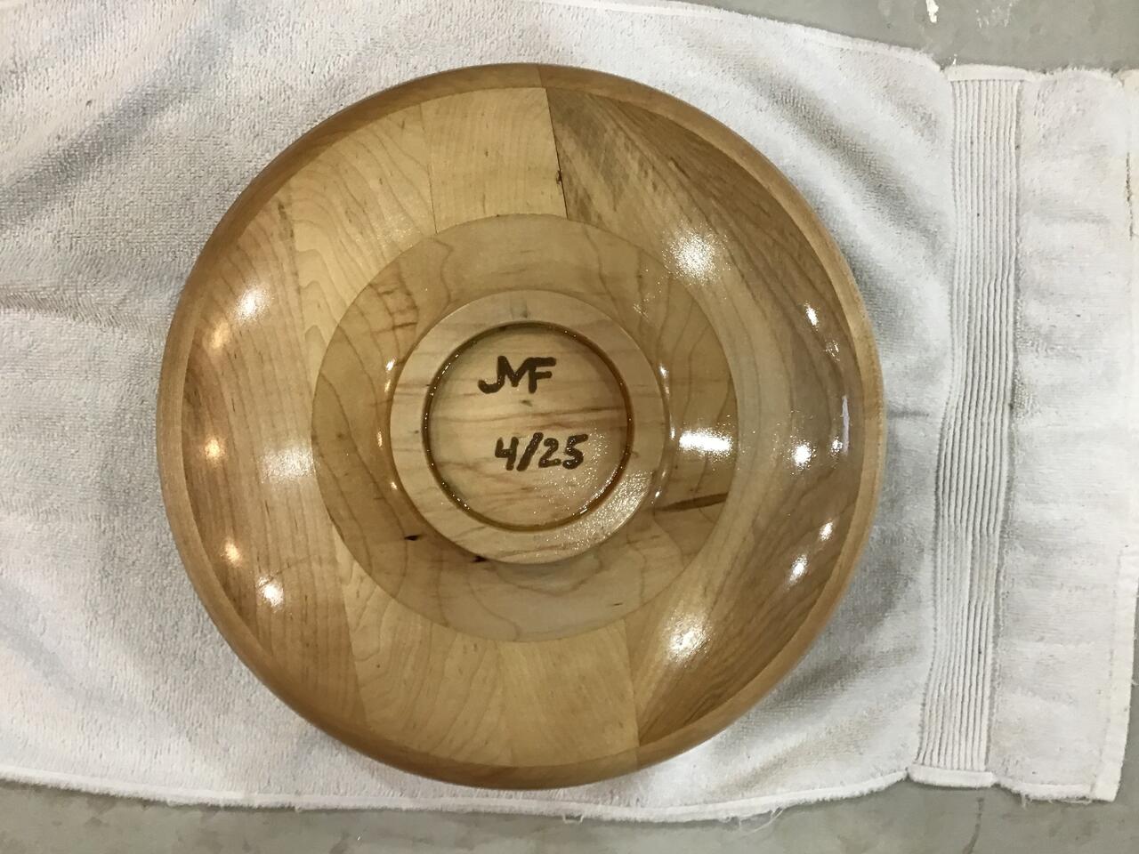 The paper bag glue mount for the faceplate mount worked just like the books stated. And all it took was a sharp rap on the backside of the bowl to separate the joint. Now to scrape/sand the recess in the bottom of the bowl clean and give it an oiling.