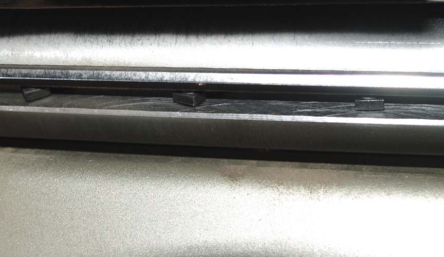 2- it has square headed reverse thread bolts that hold the blades in place.