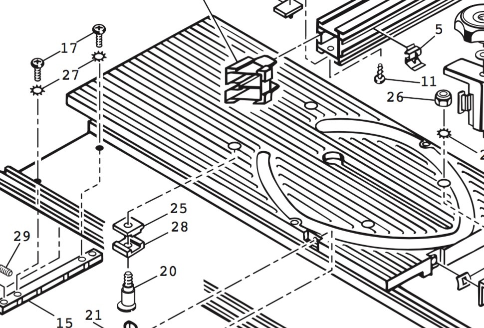 Replace the SMT base clamp screw and check alignment. You did start with your SMT clamped to the rails, right? If it was in proper alignment before you disassembled it, that is to say your SMT base was parallel to the blade it should still be so, as long as you did not disturb the base with the right front screw removed. To adjust keep in mind that the right front is fixed, the left front and rear screw's only purpose is to remove side to side play, and all adjustment is done with the left rear screw. Again I have kept mine in a state of not tight but not loose so as to be able to use a nut driver to adjust from the top. Once you've adjusted the table so that the SMT fence is 90° to the blade as well as exactly lined up with the 0° indicator rechaek base parallelism per the owners manual or some other proven method.